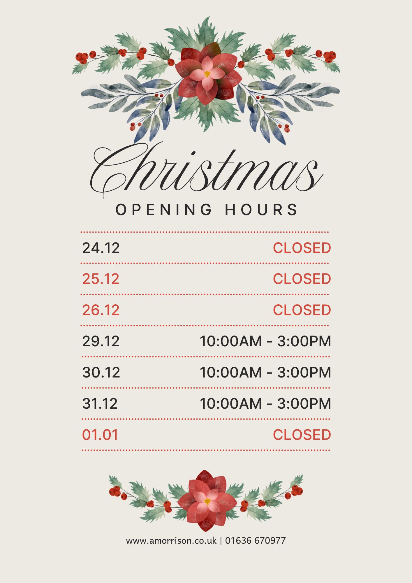 Merry Christmas and a Happy New Year. Here are our festive opening hours