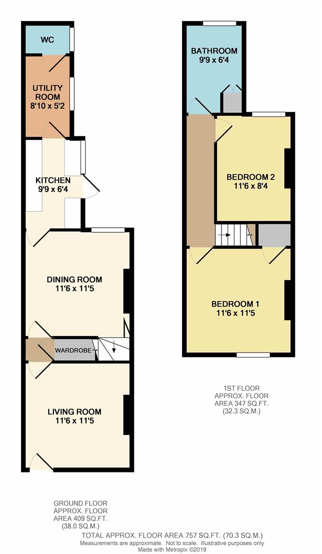 Two bedroomed terrace property within walking distance of the town centre. The accommodation comprises, lounge, dining room, kitchen, two bedrooms and a bathroom. Small garden to the rear of the property. EPC Rating D.